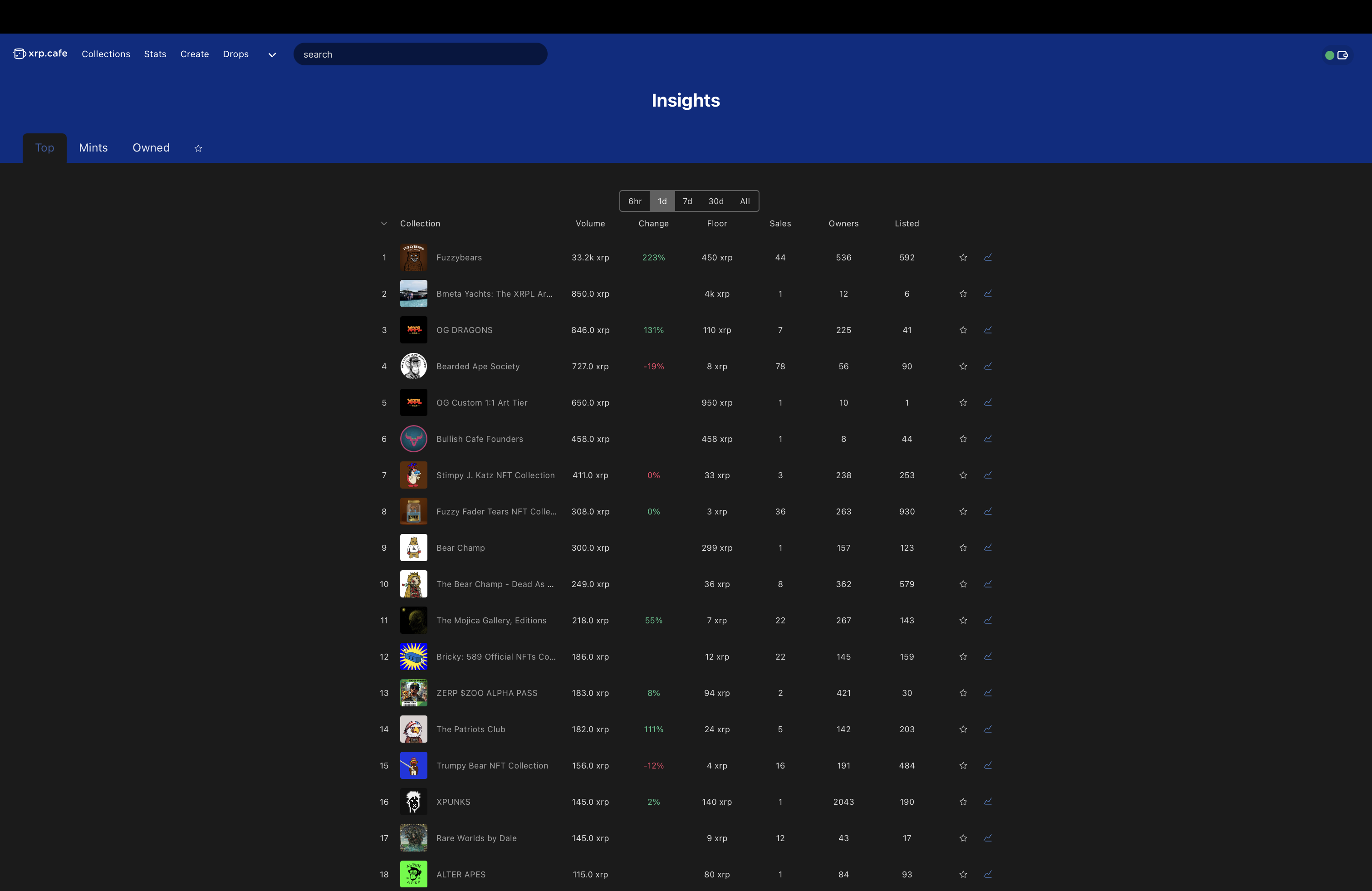 Here's a glimpse of the vibrant activity on leading XRPL NFT marketplaces like XRP.cafe, showcasing top trending collections. The ecosystem is alive and growing!